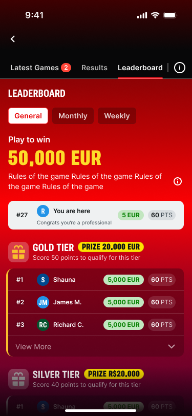 Hunch builds free-to-play prediction games inside the Super ecosystem β from one-off tournament pickβems to daily streak games that turn casual fans into habits. Every game is designed to feel native to the sportsbook, because it is.